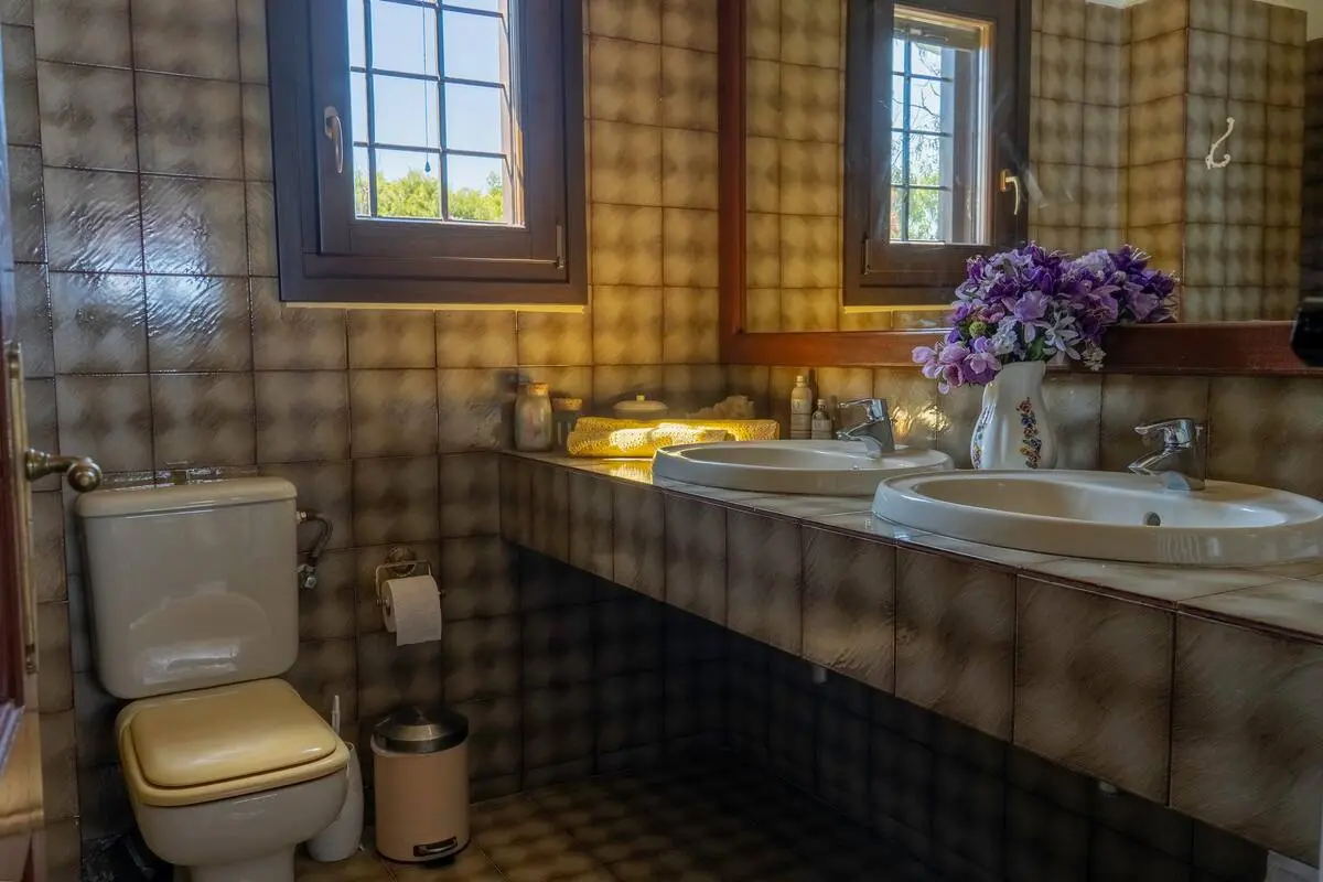 Escape to a traditional Pelion villa with 5 bedrooms, 3 bathrooms, a spacious living room, and a fully equipped kitchen. Surrounded by olive groves and overlooking the Aegean Sea with 360° views of Skiathos, Skopelos, and Alonissos, the villa combines privacy and comfort with authentic Greek charm. Perfect for families, couples, or groups of up to 12 guests.